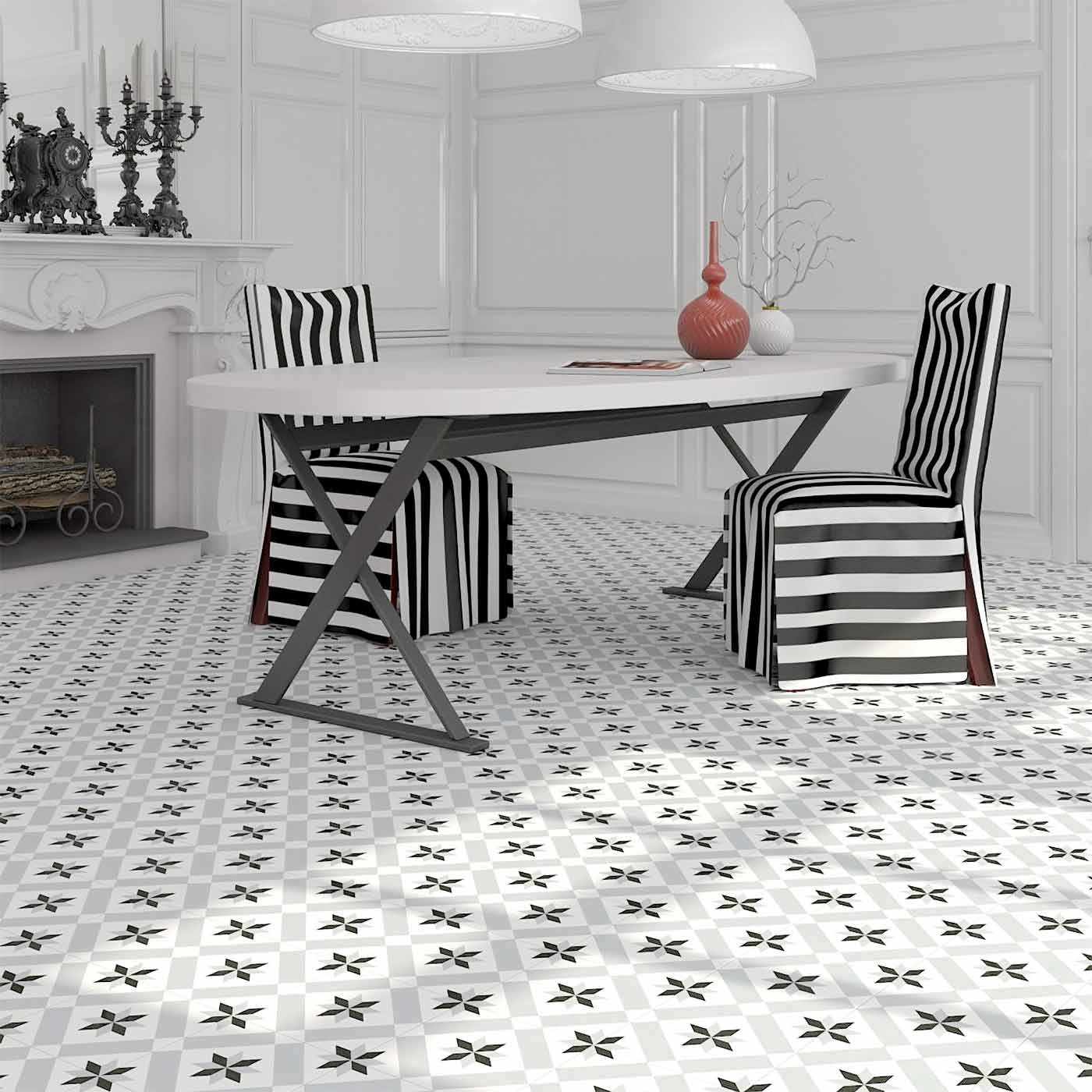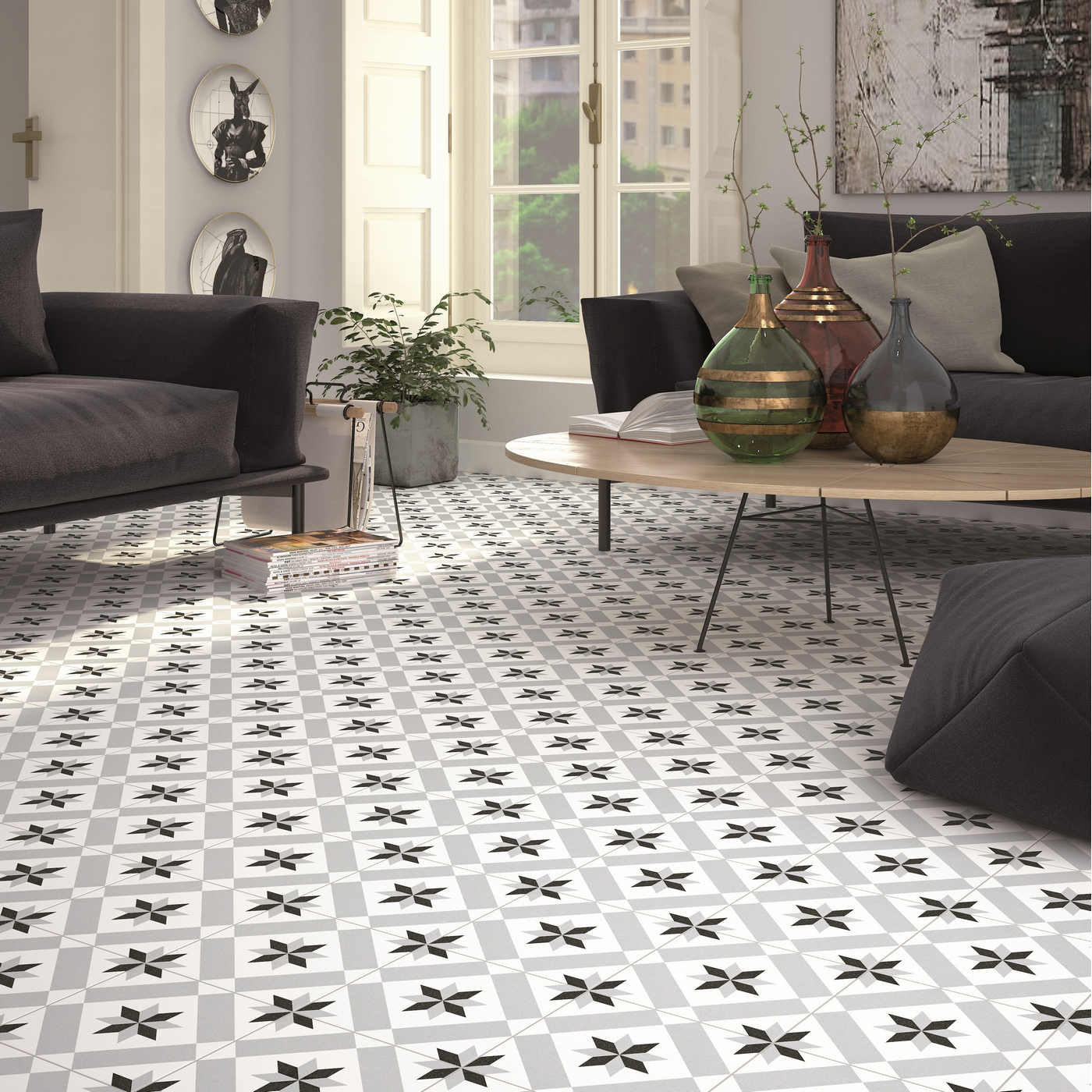 Klinker Calvet Gris 20x20 är en elegant och mångsidig klinker som erbjuder en subtil, men ändå iögonfallande design i grått, svart och vitt. Tillverkad som en del av den anmärkningsvärda 1900-serien från Vives Ceramica, kombinerar denna klinker klassisk charm med modern stil.