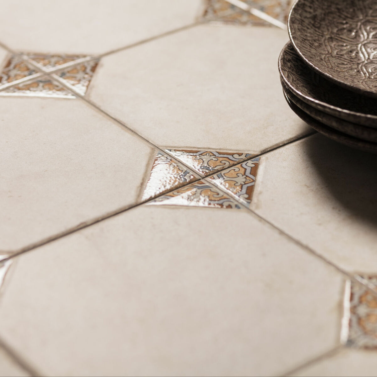 Den visuella attraktionen hos FS Field är oöverträffad. Kollektionen utmärker sig genom sina dekorativa inlägg som reflekterar en spegellik glans, vilket skapar en spännande kontrast mot plattans matta vita yta. Dessutom erbjuder FS Field ett urval av olika dekorativa inlägg i blått, brunt och svart, vilket ger dig möjlighet att skräddarsy din design efter dina unika preferenser och behov.