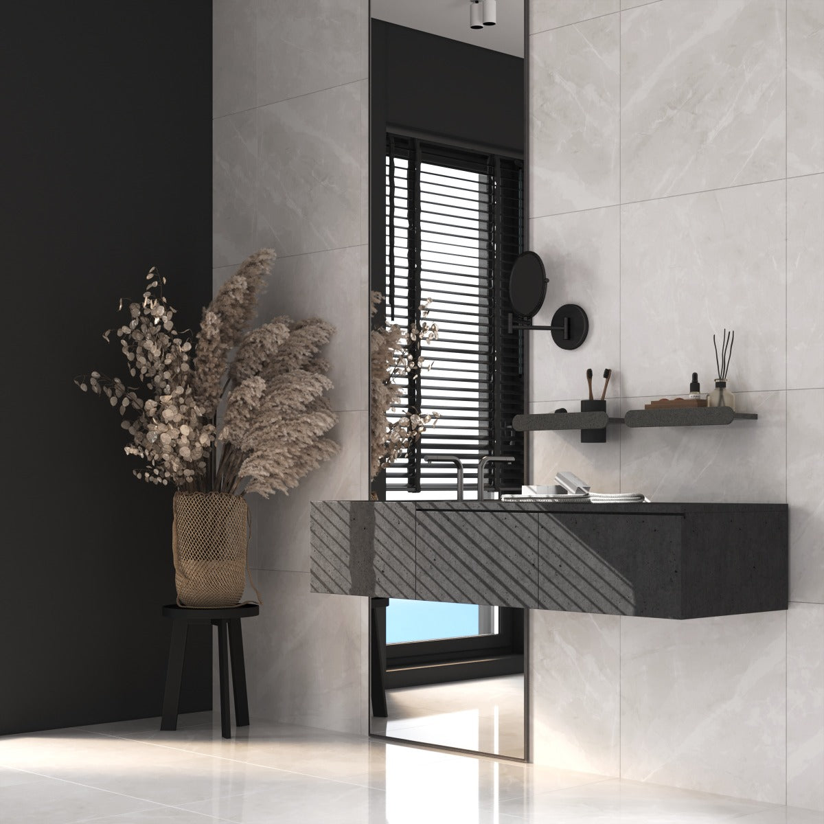 - Badrum: Den vattentäta och hållbara naturen hos granitkeramik gör Magda till ett perfekt val för badrum. De eleganta marmormönstren skapar en lyxig spa-känsla, medan den mer halksäkra, matta ytan bidrar till säkerheten.