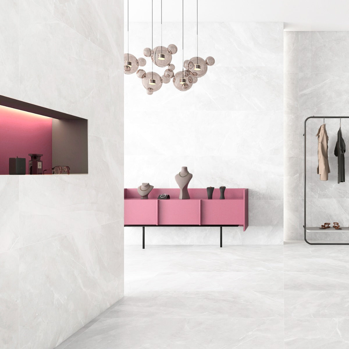 - Badrum: Den vattentäta och hållbara naturen hos granitkeramik gör Magda till ett perfekt val för badrum. De eleganta marmormönstren skapar en lyxig spa-känsla, medan den mer halksäkra, matta ytan bidrar till säkerheten.