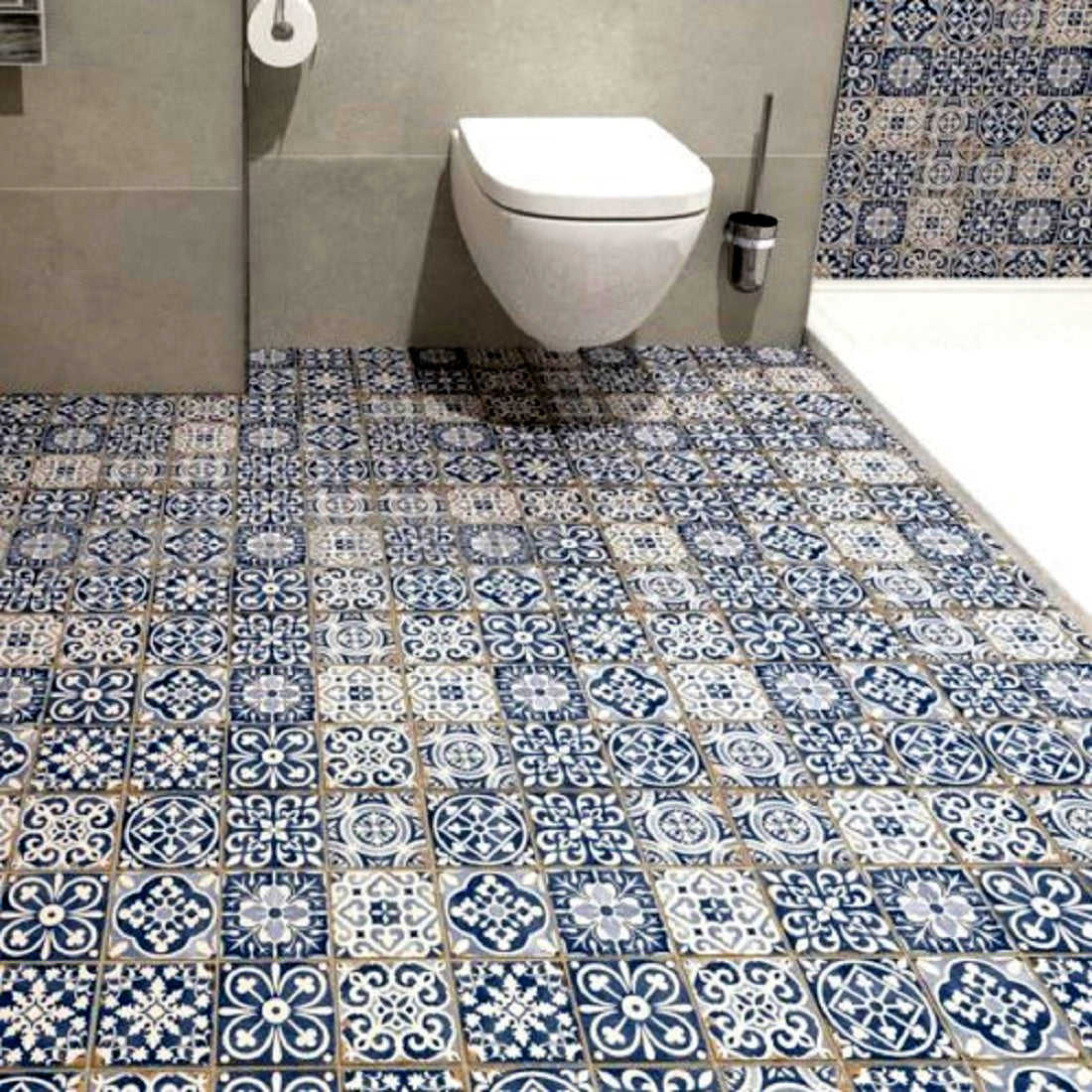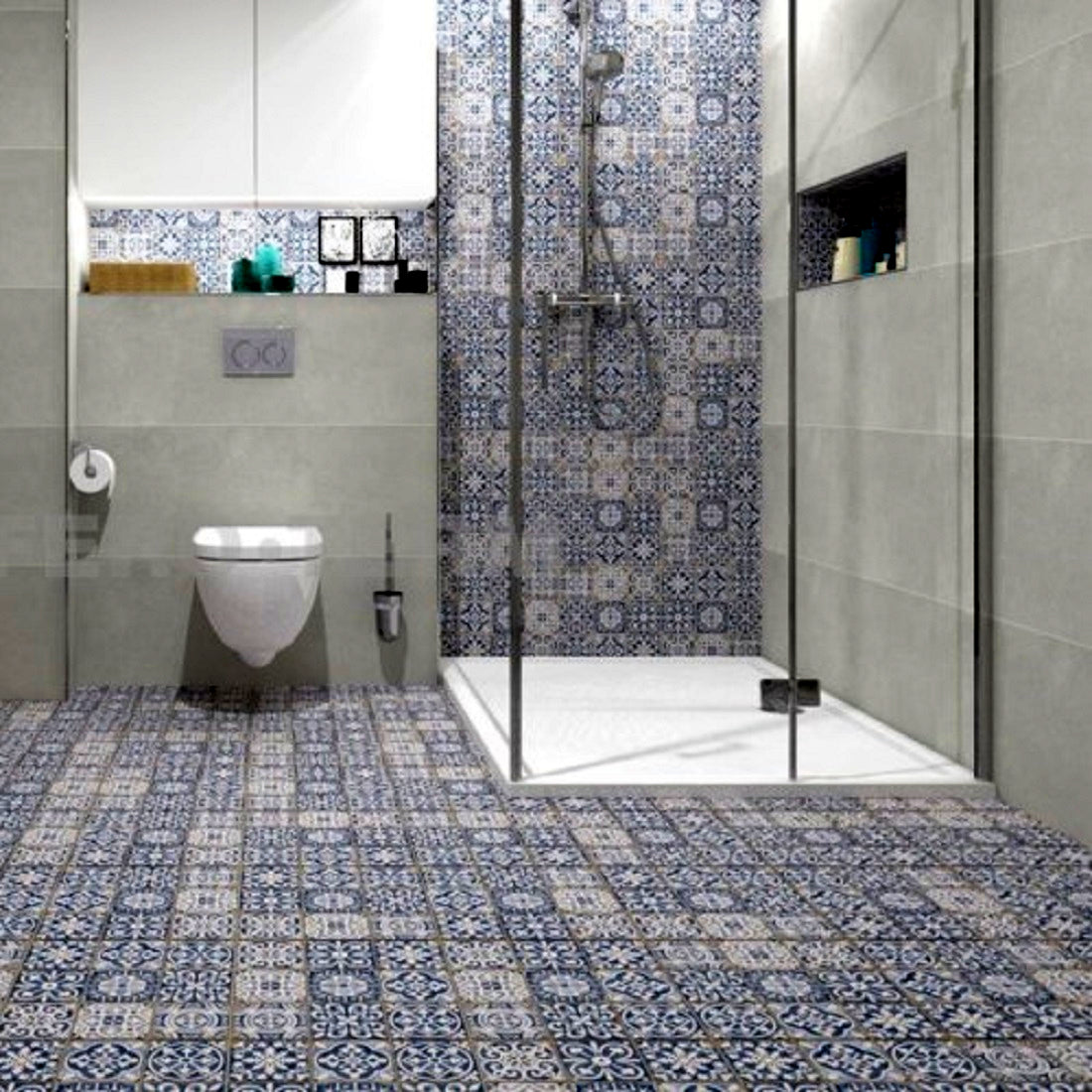 Klinker Peronda C. FS Faenza-A är en vackert mönstrad klinker med marockansk, men ändå modern känsla. Kan användas till både golv och väggar i kök, badrum, entré eller som fondvägg i andra områden. Plattan är indelad i tre rutor (á 11x11 cm) med en skåra mellan rutorna som fogas tillsammans med övriga fogar för att ge en enhetlig yta.