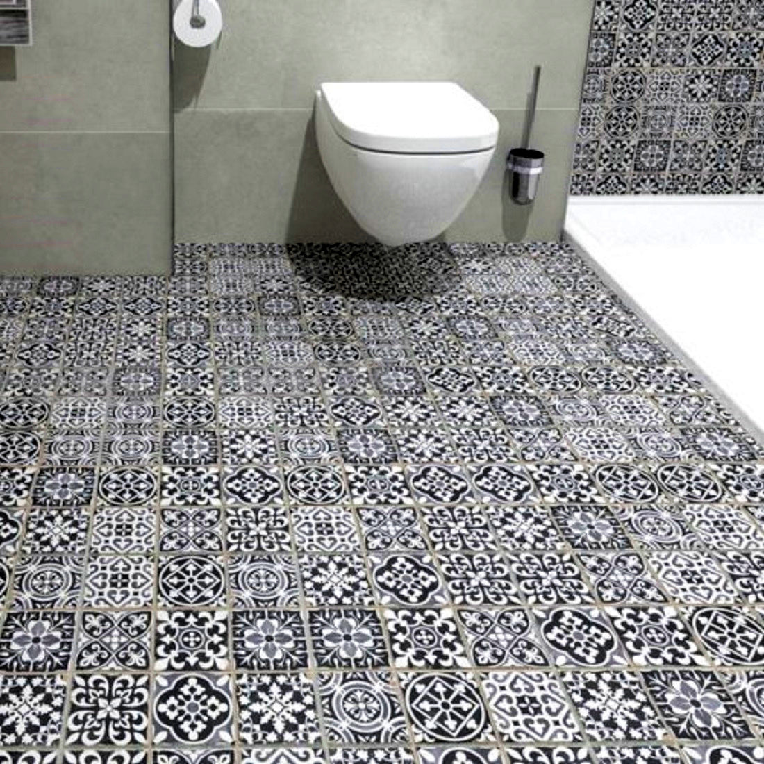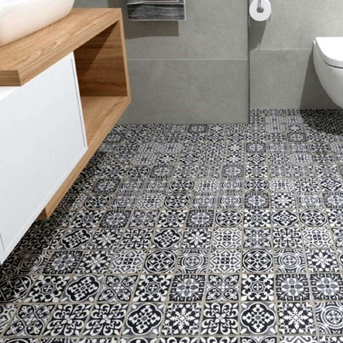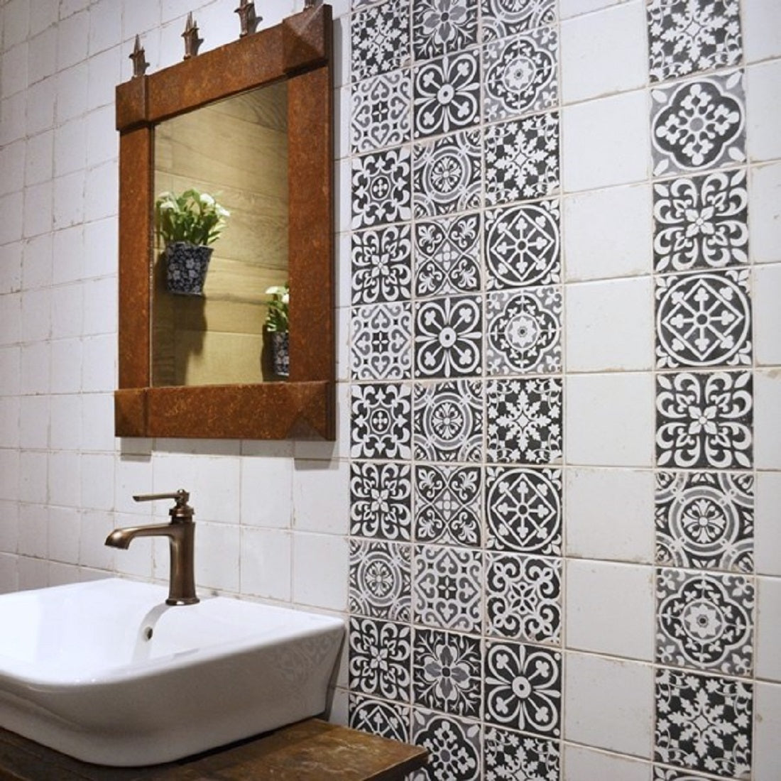 Klinker Peronda C. FS Faenza-N är en vackert mönstrad klinker med marockansk, men ändå modern känsla. Kan användas till både golv och väggar i kök, badrum, entré eller som fondvägg i andra områden. Plattan är indelad i tre rutor (á 11x11 cm) med en skåra mellan rutorna som fogas tillsammans med övriga fogar för att ge en enhetlig yta.