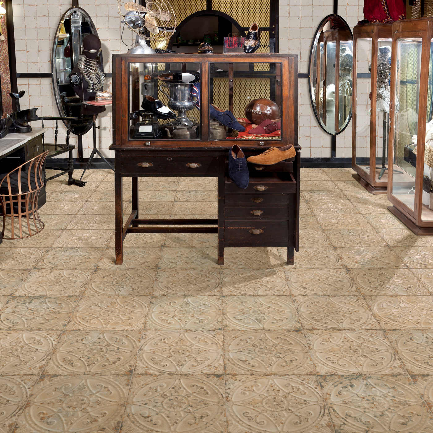 Med sitt präglande mönster och nostalgiska känsla ger FS Saja en subtil touch av industriell estetik till alla utrymmen. Inspirerade direkt av rostade metallformar som ursprungligen användes för att forma takrosetter och stuckatur i gips, återspeglar mönstren en unik och autentisk karaktär som ger varje yta en distinkt personlighet.