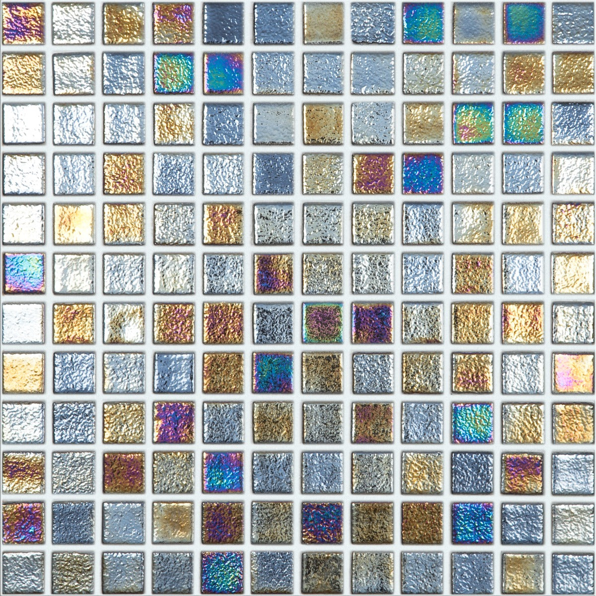 Poolmosaik Shell Deep är en mosaik i djupt lila nyanser med en skimrande guldig yta. Shell-serien har en regnbågshinna som skimrar och ger mosaiken ett extra djup. Ytan är slät och halvblank, vilket ger en härlig lyster. Denna mosaik är speciellt lämpad för användning i pool, både inomhus och utomhus. Ytan har en viss lyster som ger extra liv till mosaiken.