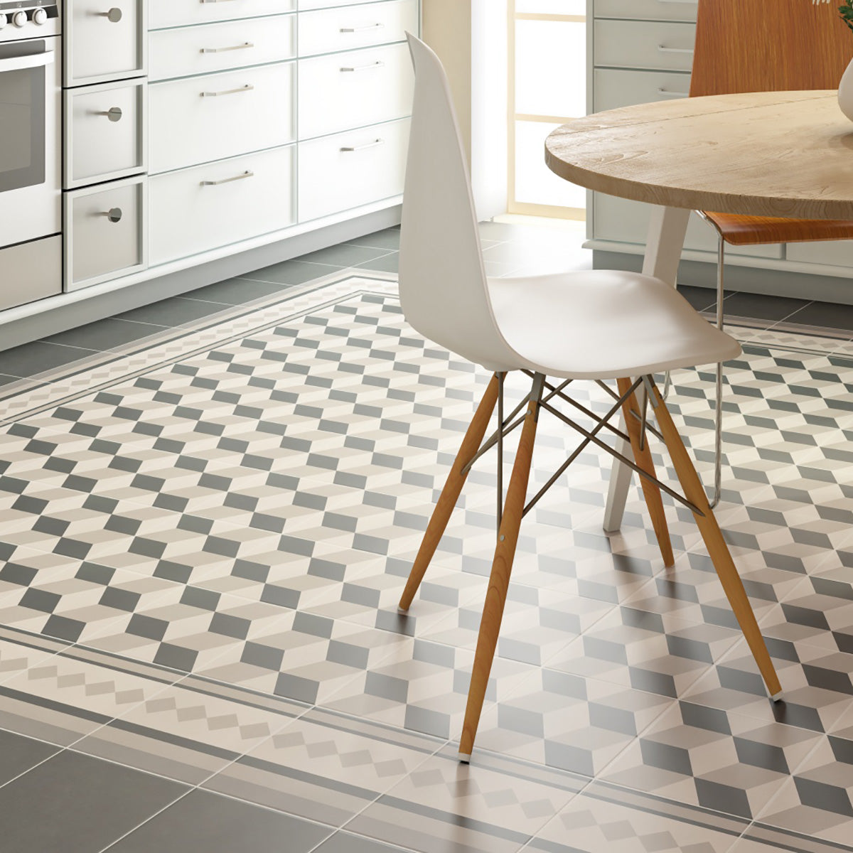 Inspirerad av sekelskiftets mönstergolv men med ett tydligt grafiskt uttryck, gör hörnplattan att du kan skapa en helhet som både känns klassisk och modern. Kombinera den med Paris dekor- och kantplattor för att få ett komplett golv eller en vägg som lyfter rummet.
