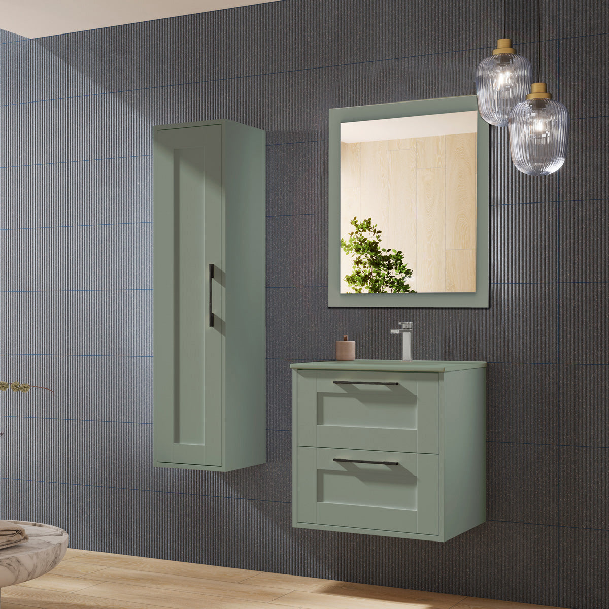 Spegelns kvalitet märks i dess materialval. Den 4 mm tjocka spegelglaset sitter på en 16 mm laminerad och lackerad MDF-bas, som är både hållbar och snygg. Basen är tillgänglig i fyra färger: Antracit, Marin Blå, Salvia, och Vit – färger som är framtagna för att harmoniera med serien Allmoge från Tenfors. Serien Allmoge innehåller stilrena kommoder och högskåp i samma färgpalett, vilket gör det enkelt att skapa ett enhetligt och smakfullt badrum.
