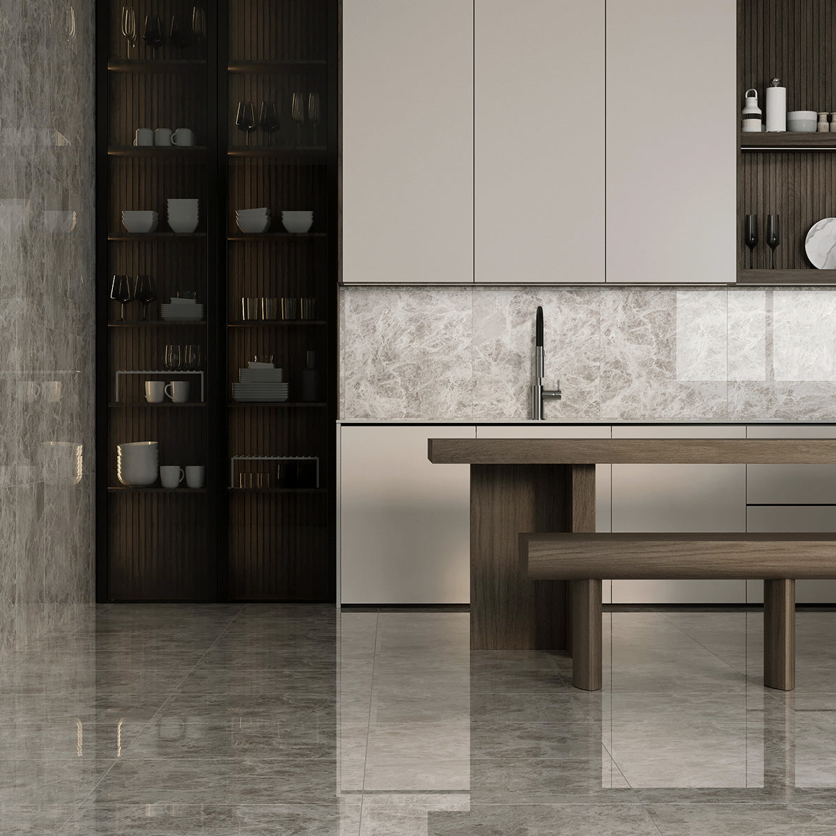 Perfekt för både inomhus- och utomhusapplikationer. Jämfört med äkta marmor, erbjuder denna granitkeramik en kostnadseffektiv lösning utan att kompromissa med den exklusiva känslan.