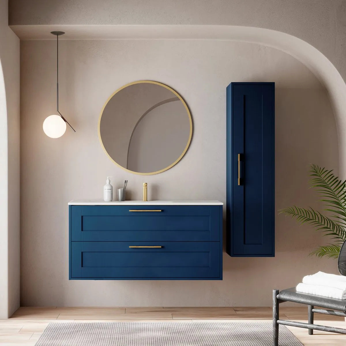 Kollektionen erbjuder kommoder och högskåp med ramfronter och dold upphängning, och finns i fyra smakfulla kulörer: marinblå, salviagrön, antracitgrå och vit. Samtliga möbler levereras färdigmonterade – för en smidig och professionell installation.