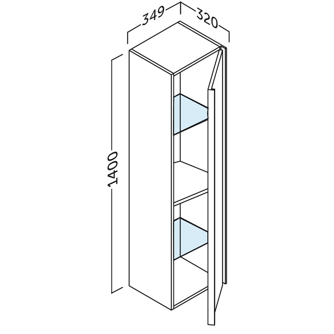 Högskåpen i serien mäter 35x140 cm och har ett djup på 35 cm, vilket gör dem perfekta för både små och stora badrum. De erbjuder rymliga hyllplan och mjukstängande dörrar, vilket ger praktisk och flexibel förvaring för handdukar och andra badrumstillbehör. Den dolda upphängningen ger en minimalistisk och svävande effekt, vilket underlättar rengöring och bidrar till en luftig känsla.