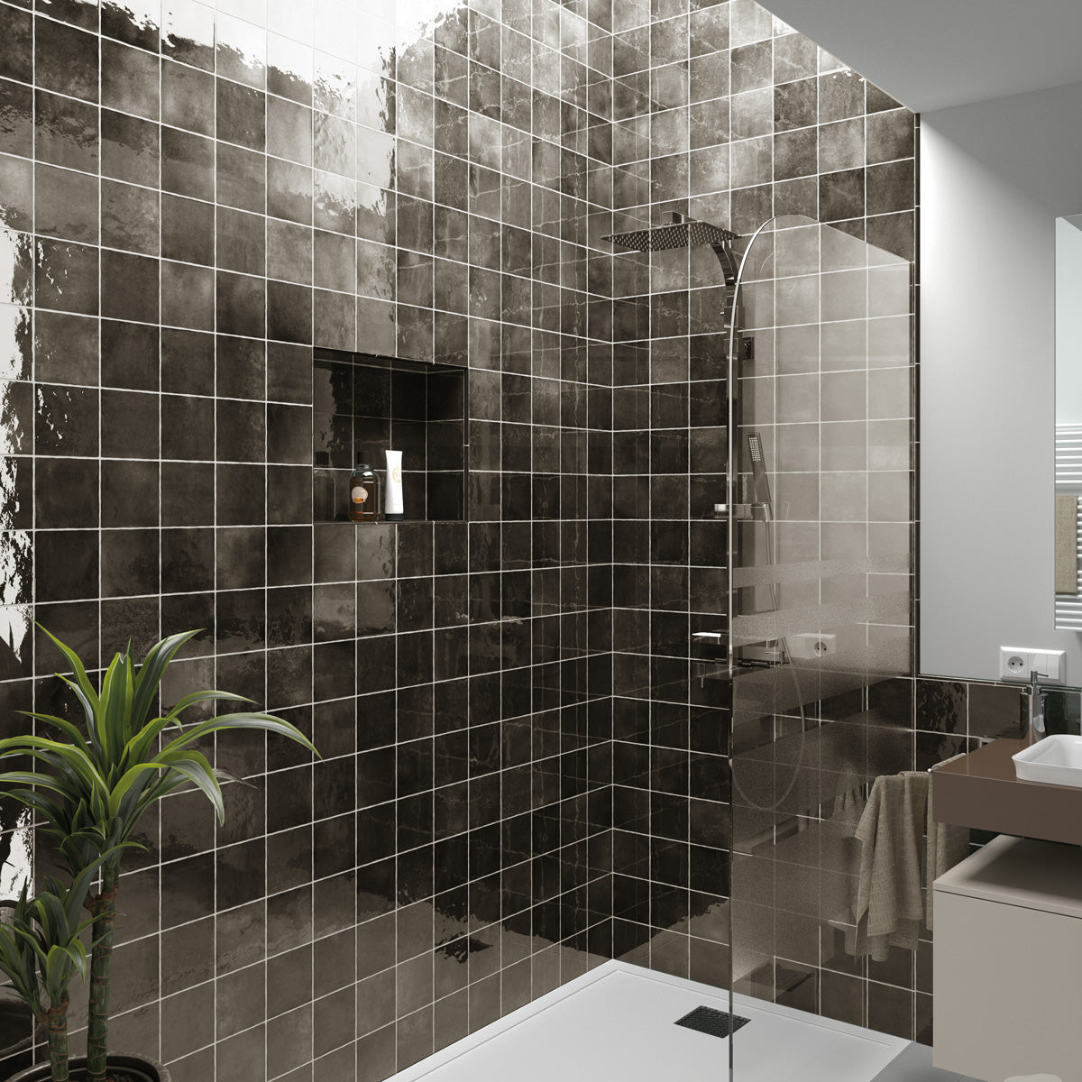Creativa Graphite i formatet 13,2x13,2 cm kombinerar mörkt grå toner med en blank yta och traditionell zellige-känsla. Den kvadratiska formen lyfter fram den ojämna ytan och färgskiftningarna, vilket skapar ett kraftfullt uttryck med mycket djup. Perfekt för dig som vill ha en modern men rustik vägg i kök eller badrum.