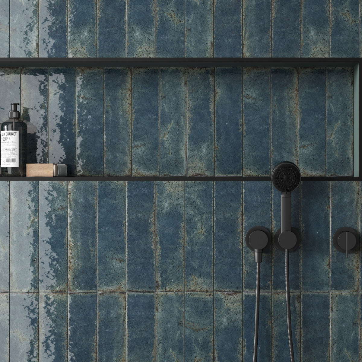 Vibrant kakel mäter 7x28 cm, en långsmal dimension som erbjuder olika kreativa läggningsalternativ: