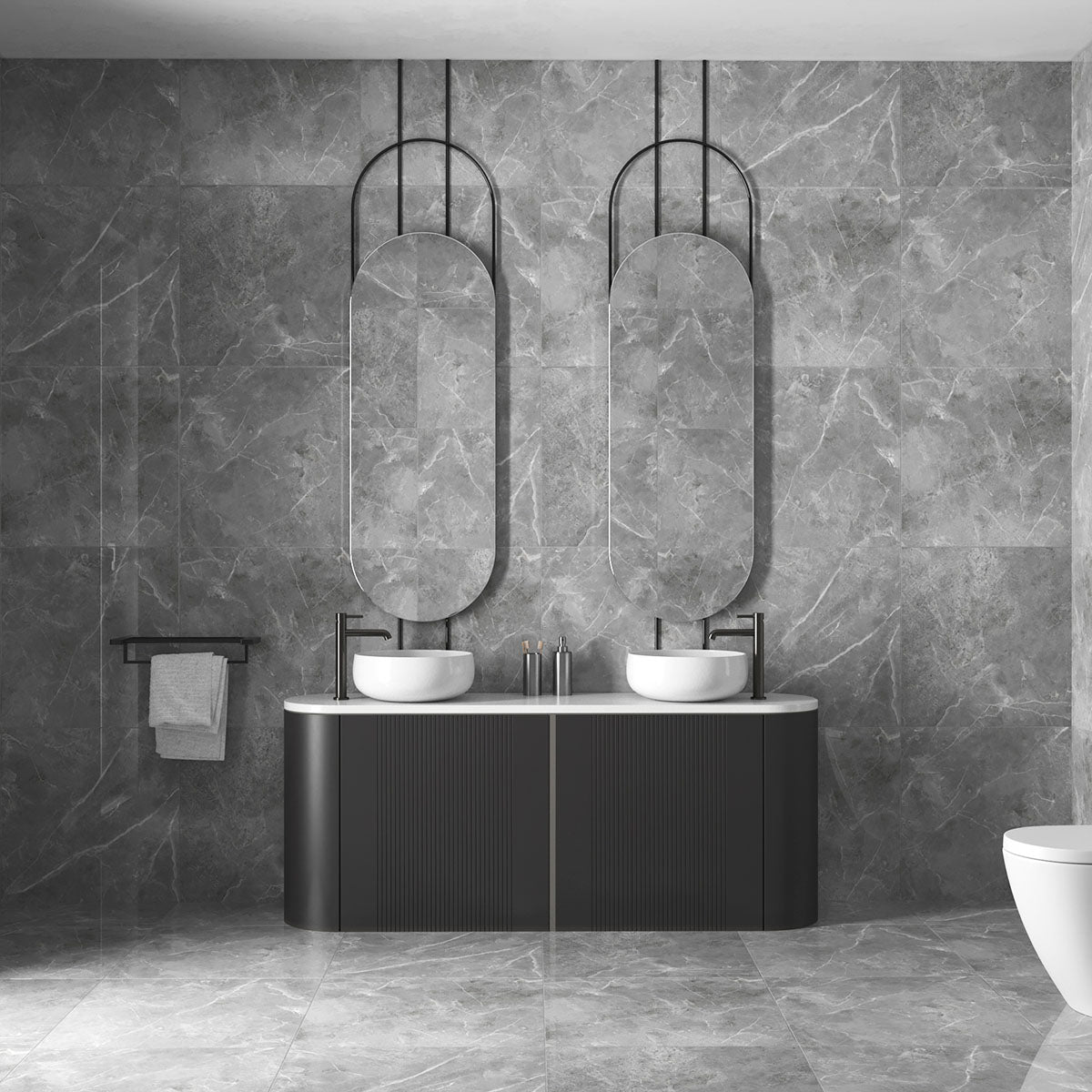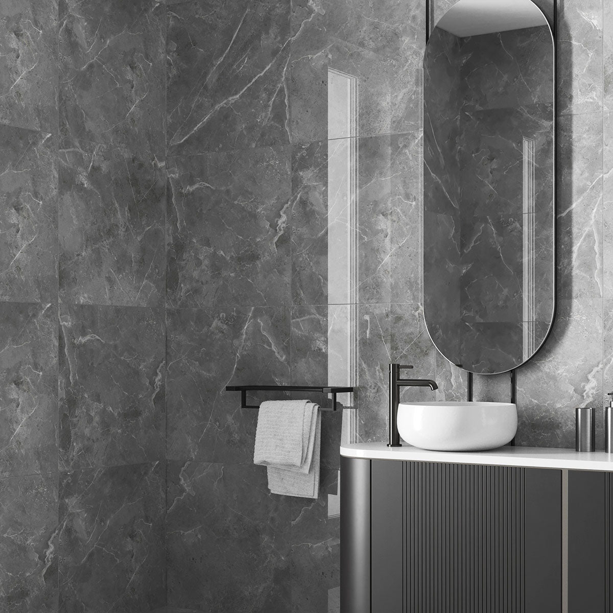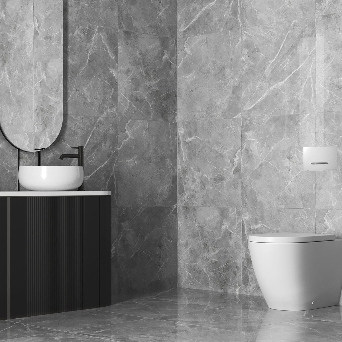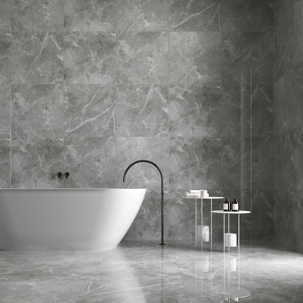 Våra marmorklinker är naturtrogna imitationer av äkta marmor. Keramiska plattor med samma känsla, samma utseende, men mycket lättare att underhålla och hålla rent. Och naturligtvis till ett lägre pris.