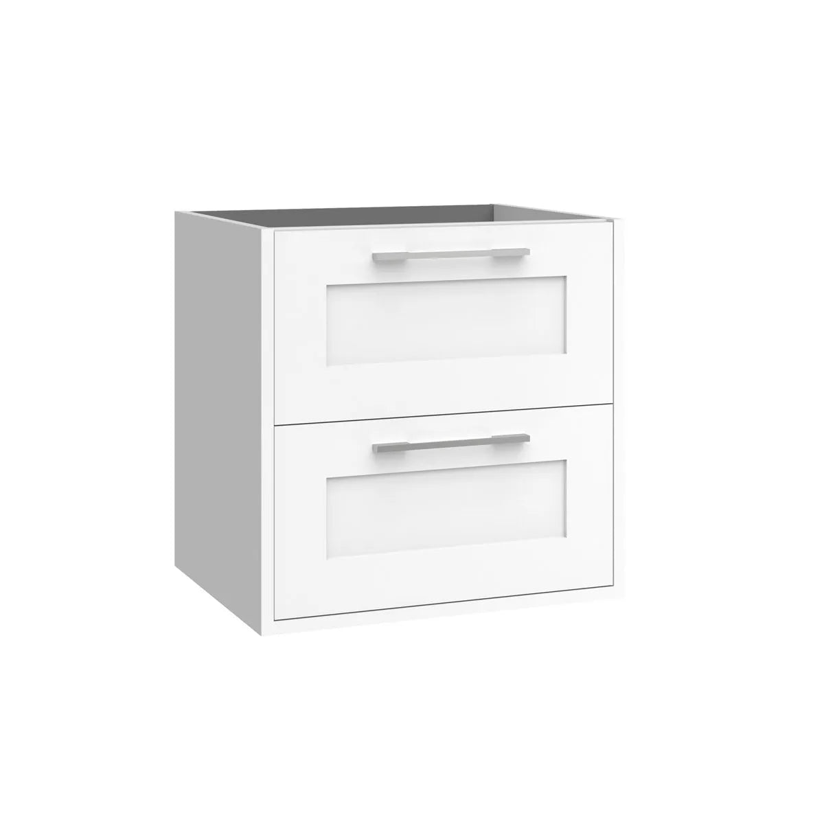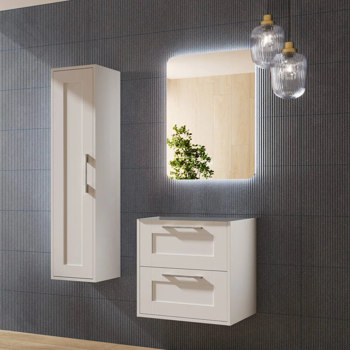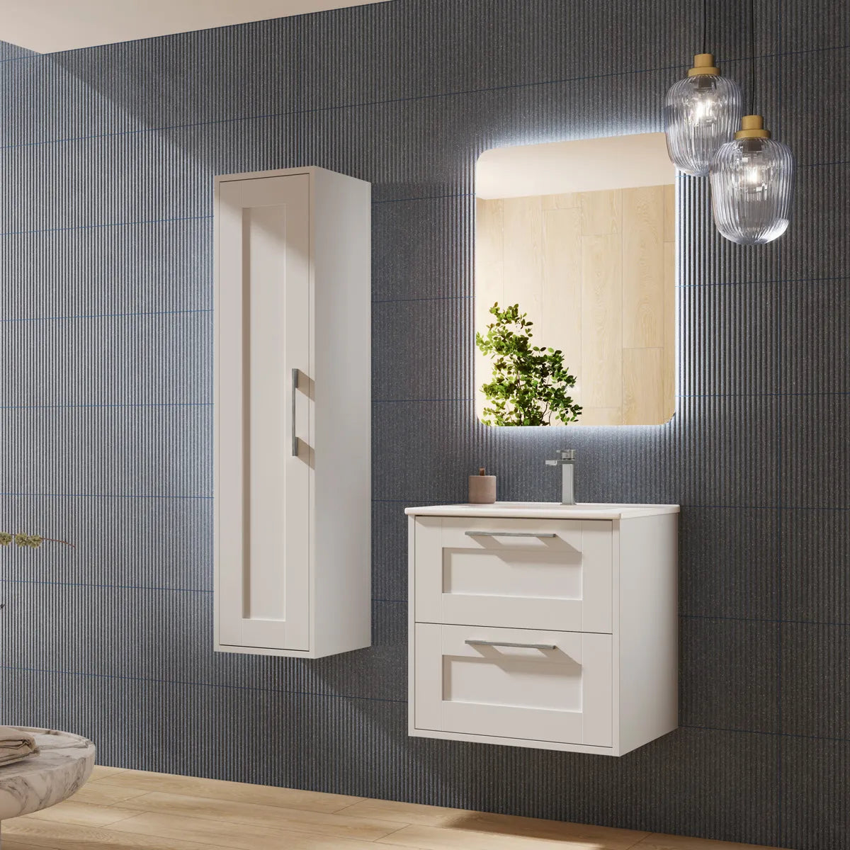 Kommoderna finns i bredd 60, 80, 100 och 120 cm, med ett djup på 45 cm och höjd på 55 cm – perfekt anpassade för såväl små som större badrum. Tillverkade av laminerad 19 mm MDF i både fronter och sidopaneler, med ramprofil i tydlig allmogestil.