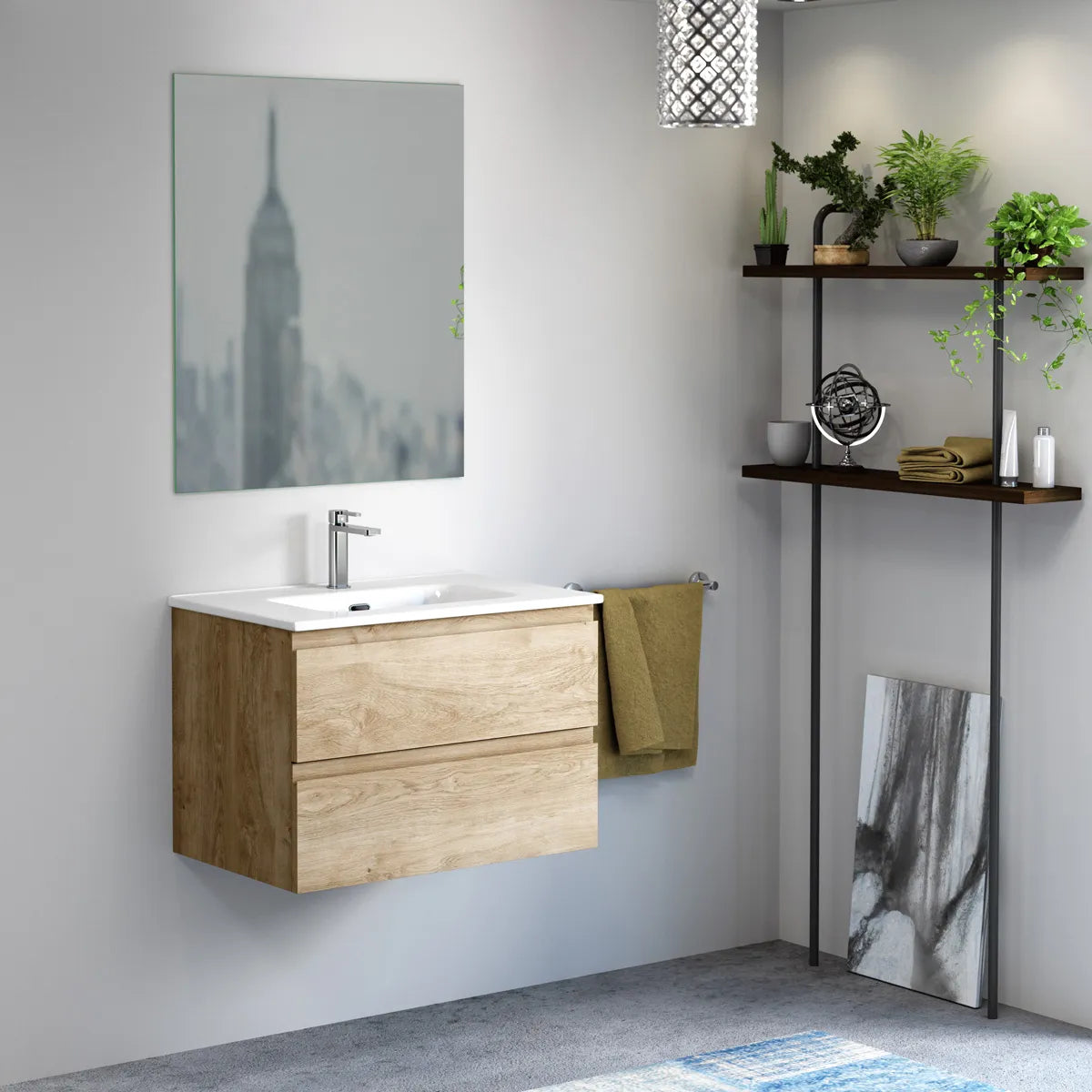 Tenfors Norrvik finns i flera utföranden: Ek, Valnöt, Grå Furu och vitt. Träimitationen är autentisk och bidrar till en varm, naturlig känsla, medan den vita varianten erbjuder ett minimalistiskt och fräscht intryck. Ytorna i laminerad MDF är hållbara och fuktresistenta, vilket gör dem särskilt lämpade för badrumsmiljöer.