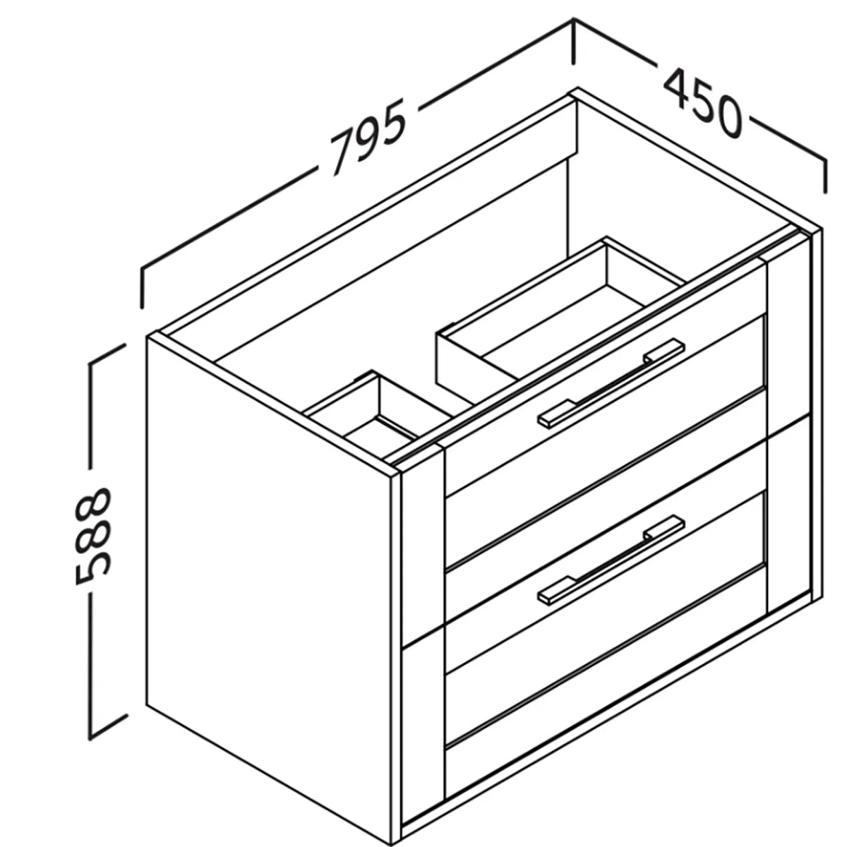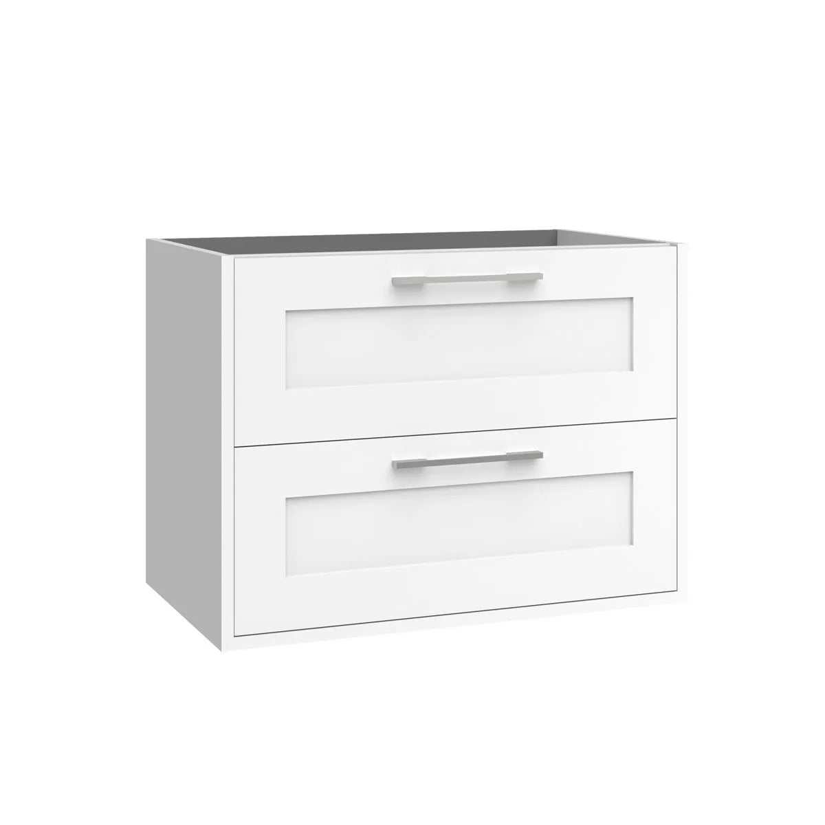 Kommoderna finns i bredd 60, 80, 100 och 120 cm, med ett djup på 45 cm och höjd på 55 cm – perfekt anpassade för såväl små som större badrum. Tillverkade av laminerad 19 mm MDF i både fronter och sidopaneler, med ramprofil i tydlig allmogestil.