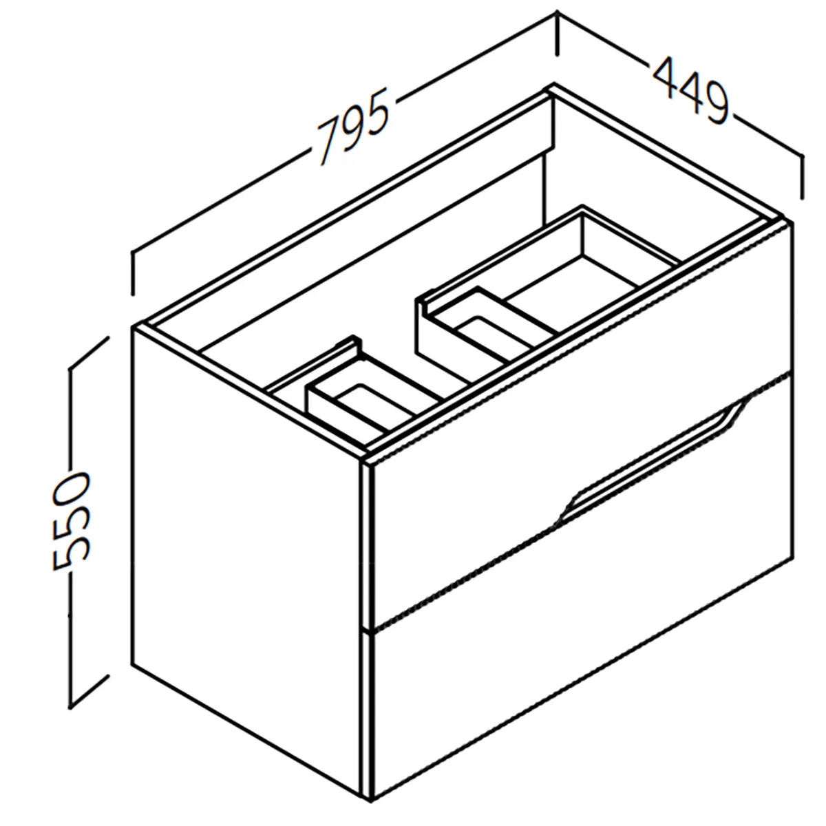 Kommoden finns i tre olika storlekar – 60 cm, 80 cm och 100 cm bred – vilket ger flexibilitet för olika typer av badrumsutrymmen, från det mindre till det större badrummet. Alla modeller har ett djup på 45 cm och en höjd på 55 cm, vilket ger tillräckligt med förvaringsutrymme utan att ta upp för mycket plats. Denna kompakta men rymliga design gör den lämplig för många olika typer av badrumskonfigurationer.