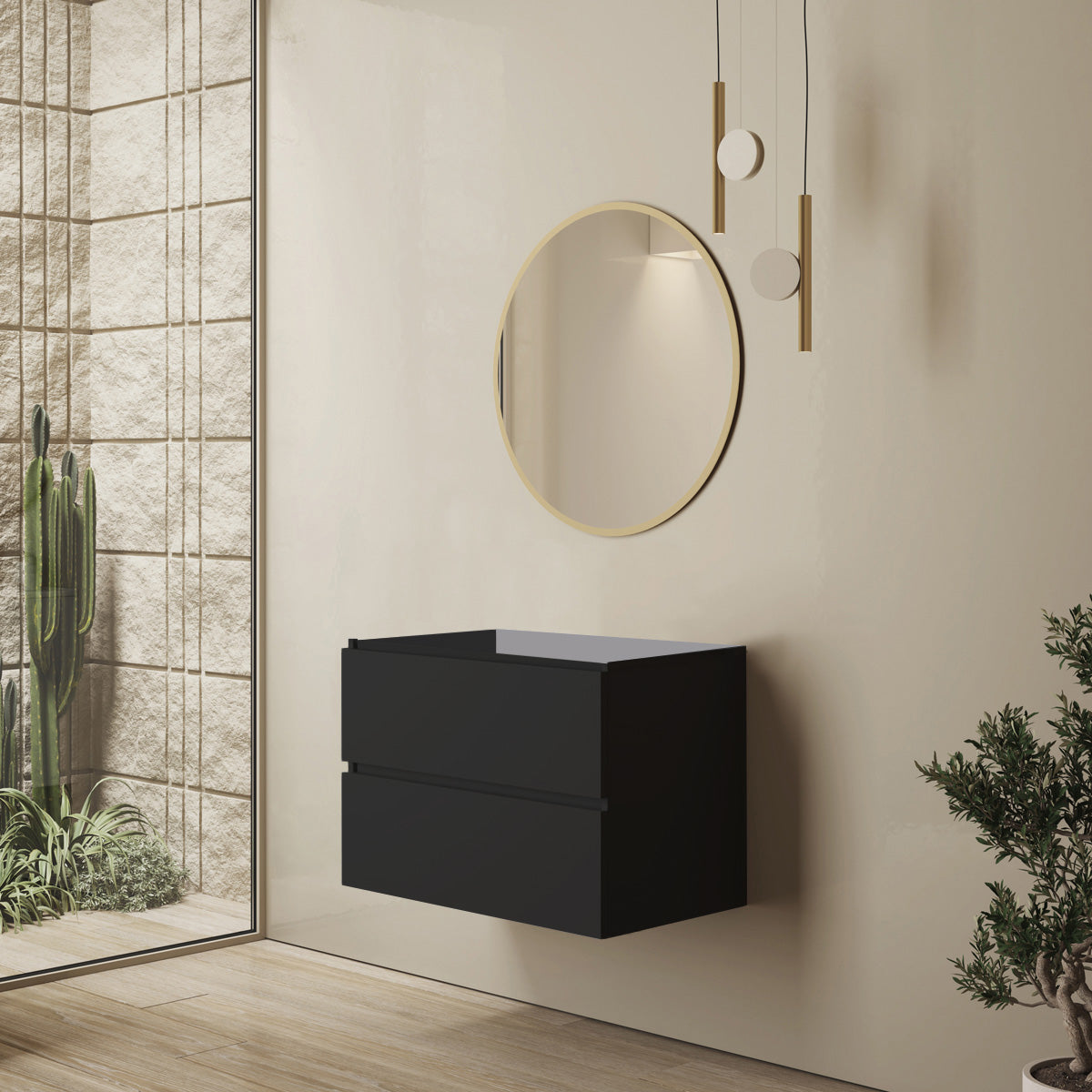 Kommoder och högskåp i serien är utrustade med mjukstängande mekanismer för lådor och dörrar, vilket både ökar användarkomforten och skyddar möblerna från onödigt slitage. Högskåpets dörrar är dessutom vändbara, vilket gör det möjligt att anpassa öppningsriktningen efter ditt badrums layout. Glashyllor i högskåpet ger en elegant och praktisk förvaringslösning, medan den handtagsfria designen skapar ett rent och modernt uttryck.