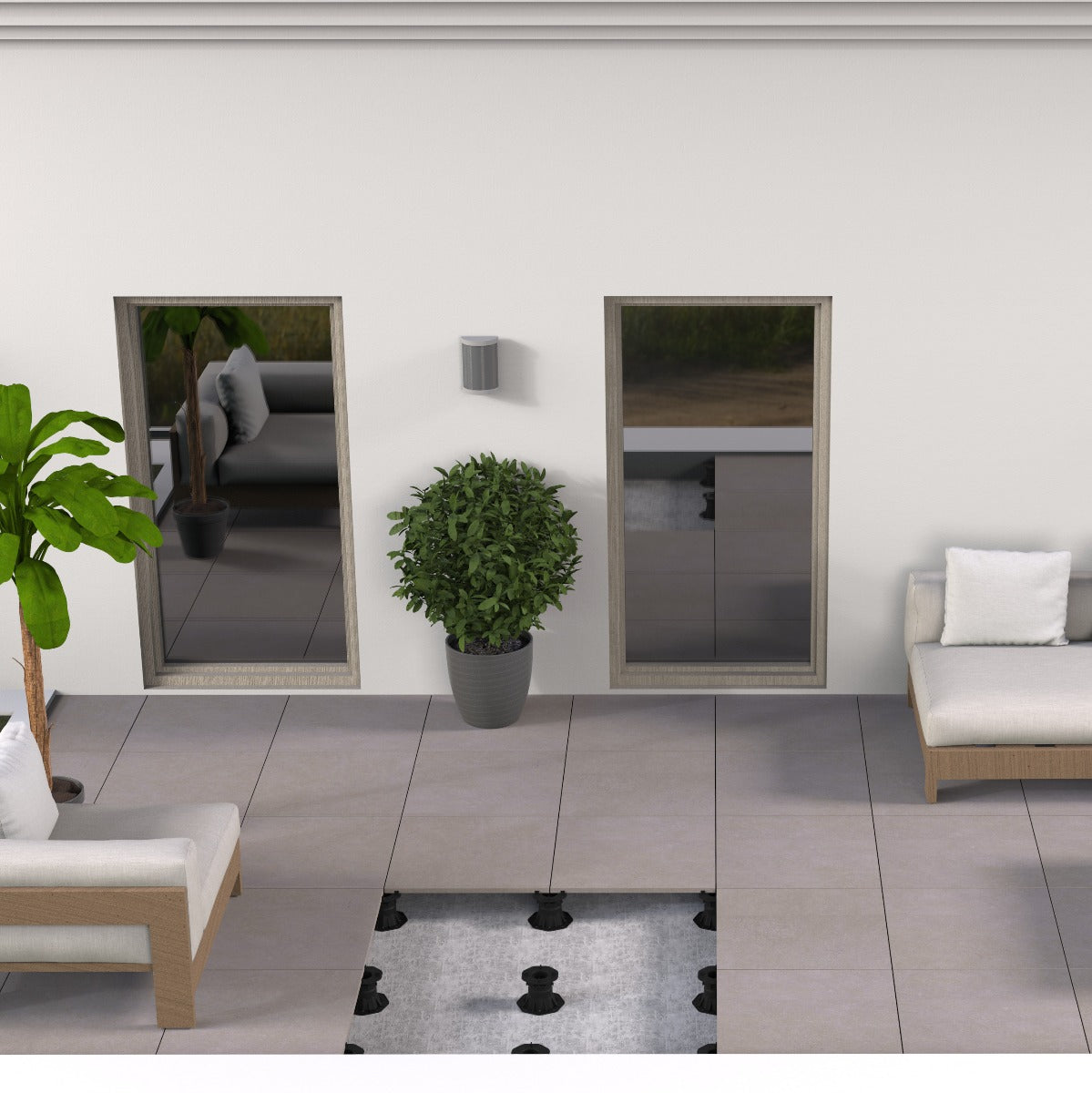 OBS! Vid installation av Uteklinker, på piedestaler, rekommenderar vi att man alltid använder en extra piedestal mitt under plattan.