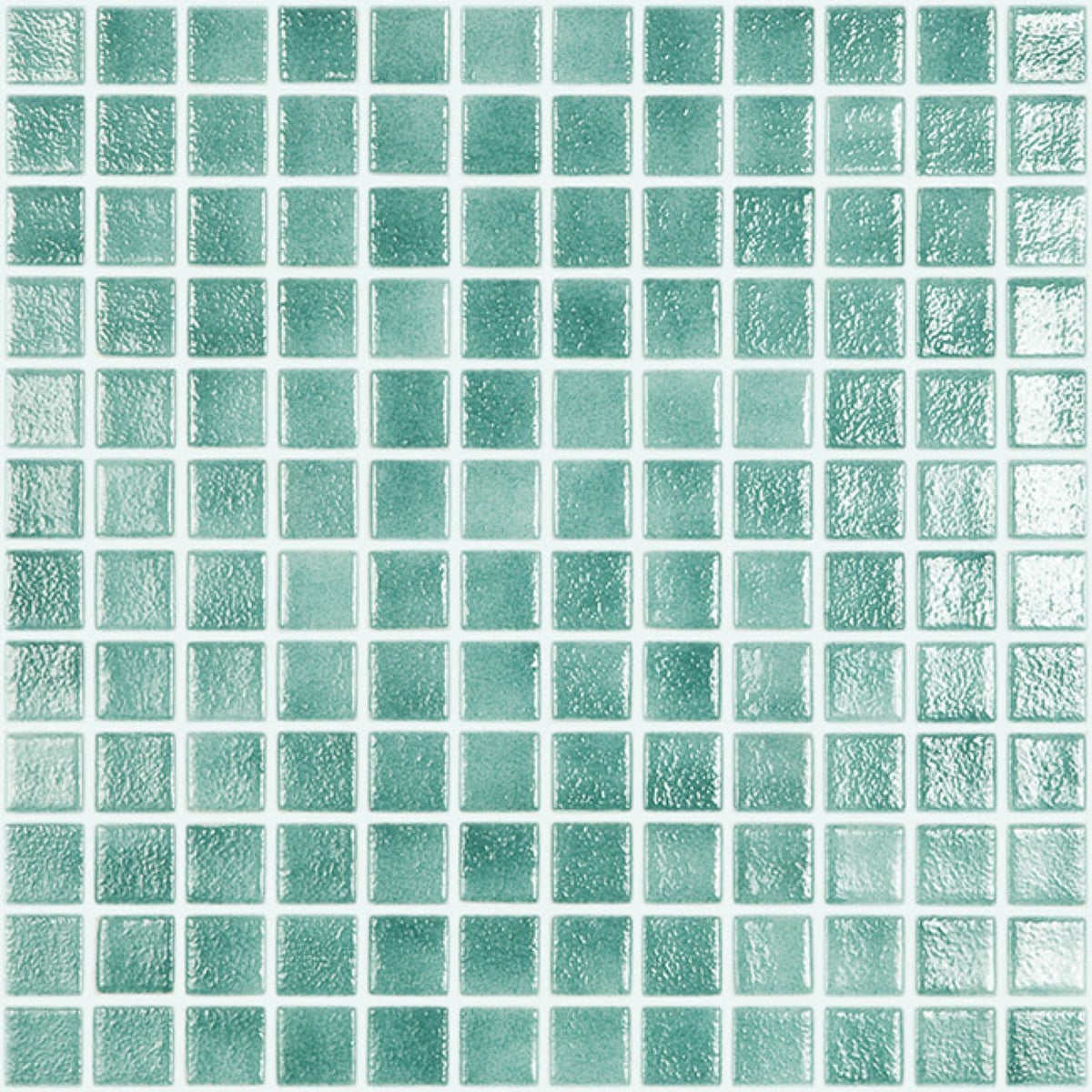 Poolmosaik Niebla Turquesa är en mosaik i blågröna nyanser. Den halvblanka ytan är varierande och med vita färgstänk som ger extra liv och rörelse. Denna mosaik är speciellt lämpad för användning i pool, både inomhus och utomhus. Ytan har en viss lyster som ger extra liv till mosaiken.