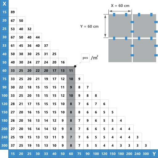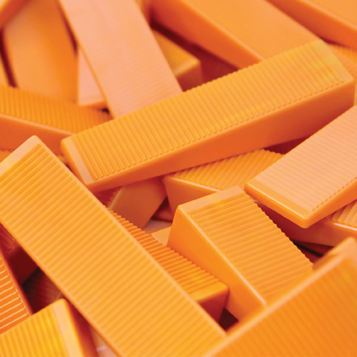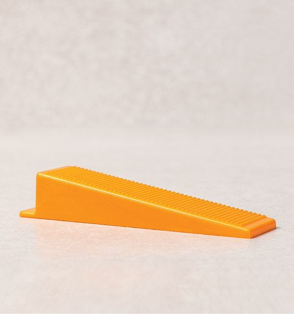 Tenfors Nivåkilar används tillsammans med nivådistanser för att genomföra en nivåutjämning på en yta med kakel eller klinker. Var noga med att välja samma märke så att de passar ihop. Tillverkade av ett extra hållbart, tjockt plastmaterial vilket gör att kilarna kan användas om och om igen. De vinklade åsarna på vinkeln används i låsningsprocessen med nivådistansen. När kilen förs in i nivådistansen hörs ett tydligt klickande ljud samtidigt som kilen utjämnar och stabiliserar plattorna på var sida fogen. När fästmassan torkat tas kilen bort med en riktad spark eller slag mot sidan av kilen längs med fogen och de kan användas igen. För att förlänga hållbarheten rekommenderar vi att kilarna rengörs efter användning. För att uppskatta antal kilar som behövs för ett större projekt är det bättre att räkna på hur många kvadratmeter som färdigställs per dag, istället för totalt antal kvadratmeter, då kilarna kan återanvändas och flytta med allt eftersom projektet förlöper nästa dag. Används med nivådistans och kiltång. Gör så här: